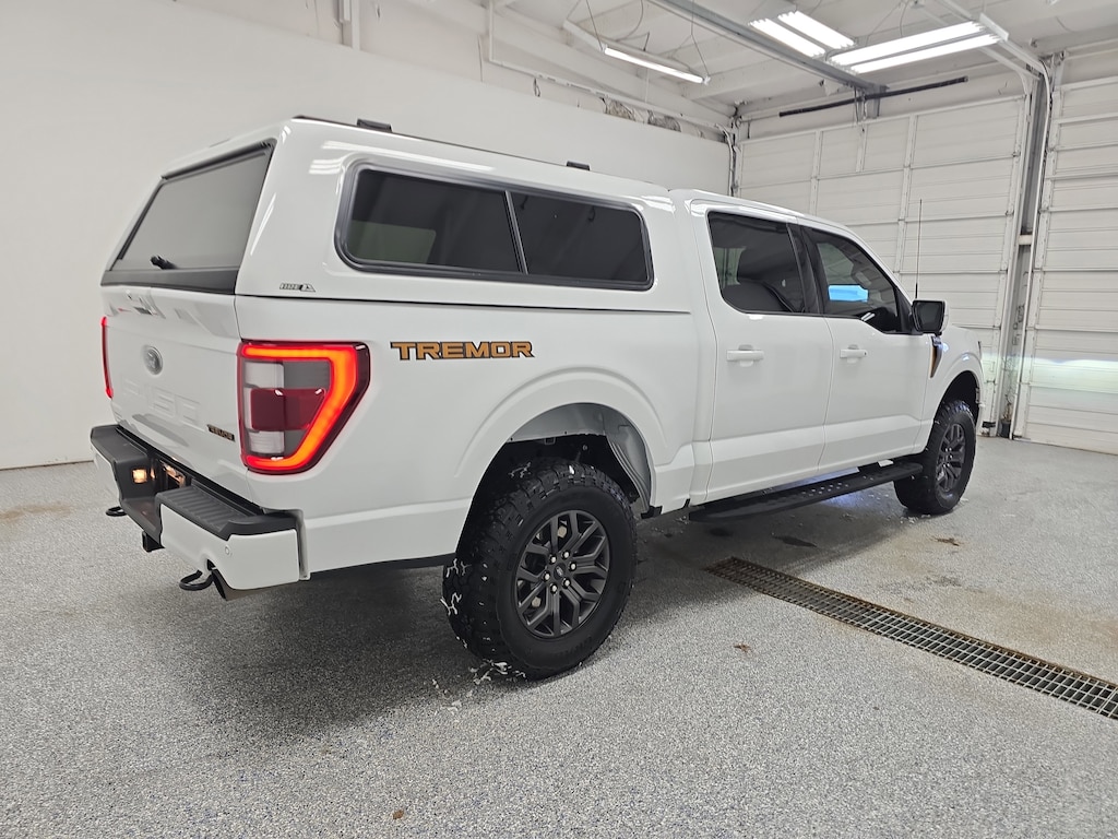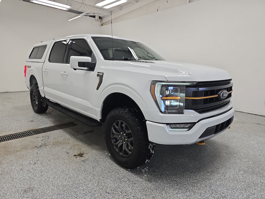 Conquer any terrain in this White 2022 Ford F-150 Tremor 4x4 SuperCrew with a powerful EcoBoost 3.5L Twin Turbo V6 engine and 10-speed shiftable automatic transmission. This Tremor comes equipped with the sought-after Equipment Group 402A, Bed Utility Package, Tow Technology Package, and Off-road Tuned Suspension for true capability. Stay connected and in control with Wireless Apple CarPlay/Android Auto, SYNC infotainment on an 8-inch touchscreen, B&O Sound System by Bang & Olufsen, built-in navigation, FordPass Connect, and a Wi-Fi hotspot. Enjoy advanced safety with Ford Co-Pilot360 Assist 2.0, 360 Degree Camera, Lane Keeping Assist, Automatic Emergency Braking with Pedestrian Detection, and Rear Parking Sensors. Premium features include heated side mirrors, power adjustable pedals, power sliding rear window, integrated trailer brake controller, Class IV trailer hitch, BoxLink, 110V/400W outlet, and the Bed Utility Package. With a rugged exterior, running boards, LED spotlights, and a versatile interior work surface, this F-150 Tremor is ready for work or adventure. Schedule your test drive today and experience capability, technology, and comfort in one outstanding package. CARFAX One-Owner Clean CARFAXCertified Pre-Owned