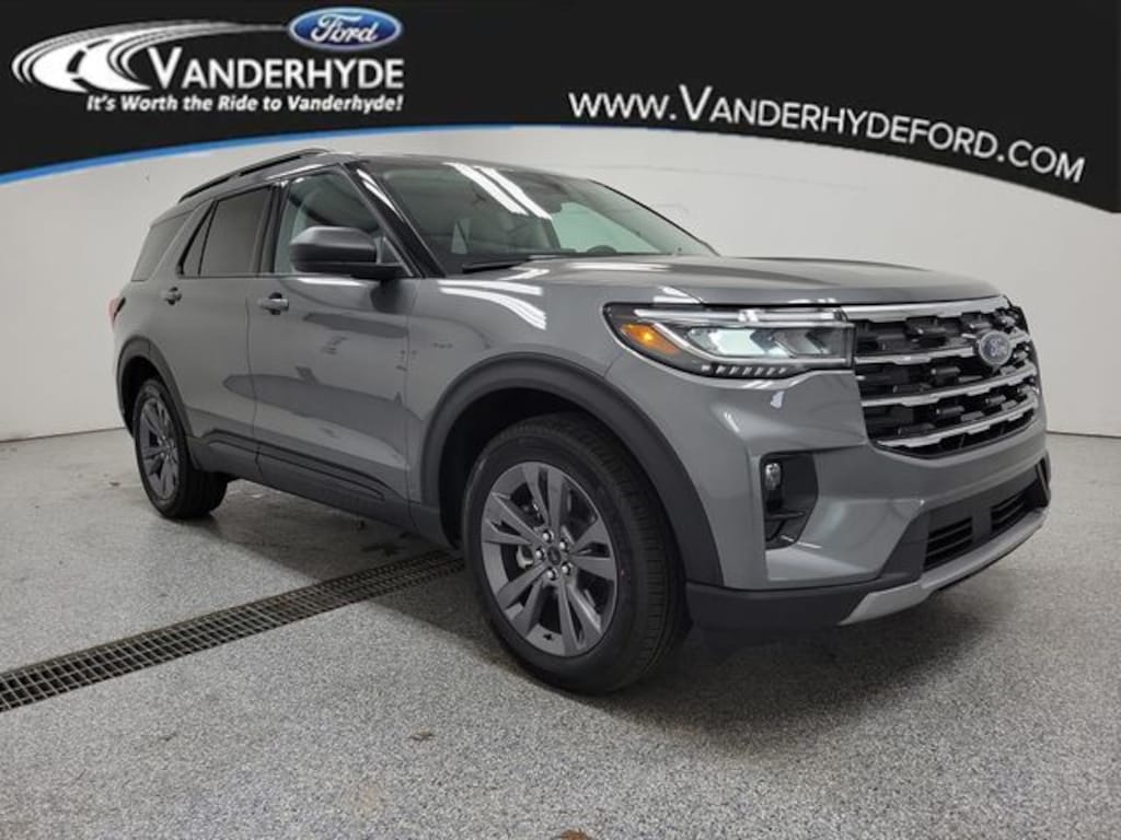 Gray 2026 Ford Explorer Active 4WD 10-Speed Automatic 2.3L EcoBoost I-4 Vanderhyde Ford has been your trusted Ford dealership in northern Kent County for over 40 years. Proudly serving Cedar Springs, Rockford, Comstock Park, Greenville, Sparta, and the Grand Rapids area, we offer a wide selection of new and used Ford vehicles. Visit Vanderhyde Ford for exceptional customer service, competitive pricing, and a commitment to the community. Explore our inventory online or stop by our dealership today to find your perfect Ford vehicle. 20/27 City/Highway MPG Vanderhyde Ford is proud to offer this good-looking 2026 Ford Explorer with the following amenities : Active Comfort Package (Front Fascia, Heated ActiveX Seating Material Captain's Chairs, Heated Steering Wheel, Remote Start System, and Second Row HVAC Controls), Equipment Group 200A Standard Package (8 USB Ports, Active Badging, Active Noise Cancellation, Black Lower Bodyside Cladding w/Chrome Accent, Black Roof-Rack Side Rails, Manual-Folding Sideview Mirrors, Power Liftgate, and Vinyl-Wrapped Steering Wheel), 3rd row seats: bench, 4-Wheel Disc Brakes, 6 Speakers, ABS brakes, Air Conditioning, Alloy wheels, AM/FM radio: SiriusXM with 360L, AM/FM Stereo, Apple CarPlay/Android Auto, Auto High-beam Headlights, Automatic temperature control, Brake assist, Bumpers: body-color, Compass, Delay-off headlights, Driver door bin, Driver vanity mirror, Dual front impact airbags, Dual front side impact airbags, Electronic Stability Control, Emergency communication system: 911 Assist, Exterior Parking Camera Rear, Four wheel independent suspension, Front anti-roll bar, Front Bucket Seats, Front Center Armrest, Front dual zone A/C, Front reading lights, Fully automatic headlights, Heated door mirrors, Illuminated entry, Knee airbag, Low tire pressure warning, Navigation System, Occupant sensing airbag, Outside temperature display, Overhead airbag, Overhead console, Panic alarm, Passenger door bin, Passenger vanity mirror,Price includes: $500 - Retail Bonus Cash - Select Models 11598 (Exp. 01/05/2026)