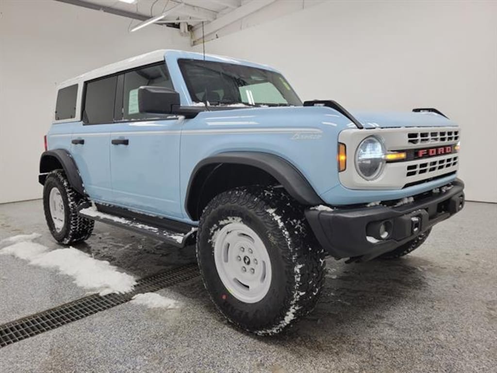 Experience the ultimate blend of rugged capability and classic style with this Light Blue 2025 Ford Bronco Heritage Edition 4 Door Advanced 4x4. With just 1 mile on the odometer, this Bronco is ready for your next adventure. Powered by a robust EcoBoost 2.7L Twin Turbo V6 delivering 315hp and 410 lb-ft of torque, paired with a 10-speed automatic transmission and advanced 4X4 system featuring Terrain Management and full-time four-wheel drive. Enjoy legendary off-road performance with HOSS 2.0 suspension, Bilstein shocks, and front/rear locking differentials. The Heritage Edition boasts unique 17" white wheels, plaid heated front bucket seats, and a removable hardtop with targa sunroofs. Stay connected with SYNC 4, a 12-inch touchscreen, wireless Apple CarPlay/Android Auto, and navigation. Safety is top-tier with Ford Co-Pilot360, blind spot monitoring, lane-keeping system, and a rear camera with reverse sensors. Additional features include automatic climate control, upgraded floor mats, keyless entry, remote start, and a full suite of airbags. This Bronco combines modern tech, comfort, and off-road prowess in an iconic package-don't miss your chance to own this rare, nearly new SUV!Price includes: $2500 - Retail Customer Cash - 11664 v2 11664 (Exp. 03/31/2026)