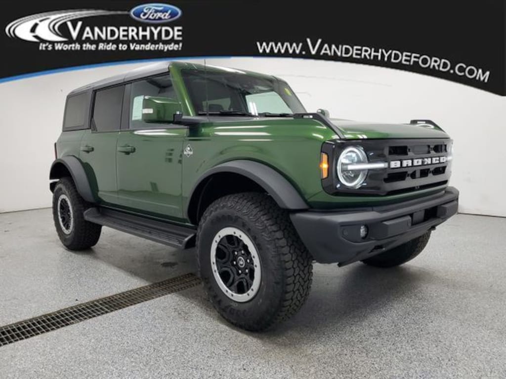Vanderhyde Ford is very proud to offer this gorgeous 2025 Ford Bronco with the following amenities : Equipment Group 314A Lux Package (360-Degree Camera, Adaptive Cruise Control, Evasive Steering Assist, Front Parking Sensors, Information on Demand Panel, Radio: B&O Sound System by Bang & Olufsen, Sideview Mirrors, and Universal Garage Door Opener), Sasquatch Package (High Clearance Fender Flares, High Clearance Suspension, Position-Sensitive Bilstein Shock Absorbers, and Wheels: 17" Carbonized Gray Painted Aluminum), 18" Bright Machined Aluminum Wheels, 4-Wheel Disc Brakes, 7 Speakers, ABS brakes, Air Conditioning, Alloy wheels, AM/FM radio: SiriusXM with 360L, AM/FM Stereo, Auto High-beam Headlights, Auto-dimming Rear-View mirror, Automatic temperature control, Brake assist, Carbonized Gray Molded-In-Color Hard Top, Compass, Connected Navigation, Delay-off headlights, Driver door bin, Driver vanity mirror, Dual front impact airbags, Dual front side impact airbags, Electronic Stability Control, Emergency communication system: 911 Assist, Exterior Parking Camera Rear, Front anti-roll bar, Front Bucket Seats, Front Center Armrest, Front dual zone A/C, Front fog lights, Front reading lights, Front wheel independent suspension, Fully automatic headlights, Heated door mirrors, Heated front seats, Heated Leather-Trimmed/Vinyl Bucket Seats, Heated steering wheel, Illuminated entry, Integrated roll-over protection, Leather Shift Knob, Low tire pressure warning, Navigation system: Connected Navigation, Occupant sensing airbag, Outside temperature display, Overhead airbag, Overhead console, Panic alarm, Passenger door bin, Passenger vanity mirror, Power door mirrors, Power driver seat, Power passenger seat, Power steering, Power windows, Radio data system, Rear seat center armrest, Rear-Window Defroster & Washer, Remote keyless entry, Security system, SiriusXM w/360L, Speed control, Split folding rear seat, Steering wheel mounted audio controls, SYNC 4, Tachometer, Telescoping steering wheel, Tilt steering wheel, Traction control, Trip computer, Variably intermittent wipers, Voltmeter, and Wheels: 17" Black High Gloss-Painted Aluminum (64X) Price excludes tax, title, license, and doc fees, but does include the following rebates:$1000 - Retail Bonus Cash. Exp. 01/05/2026