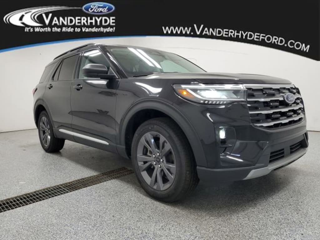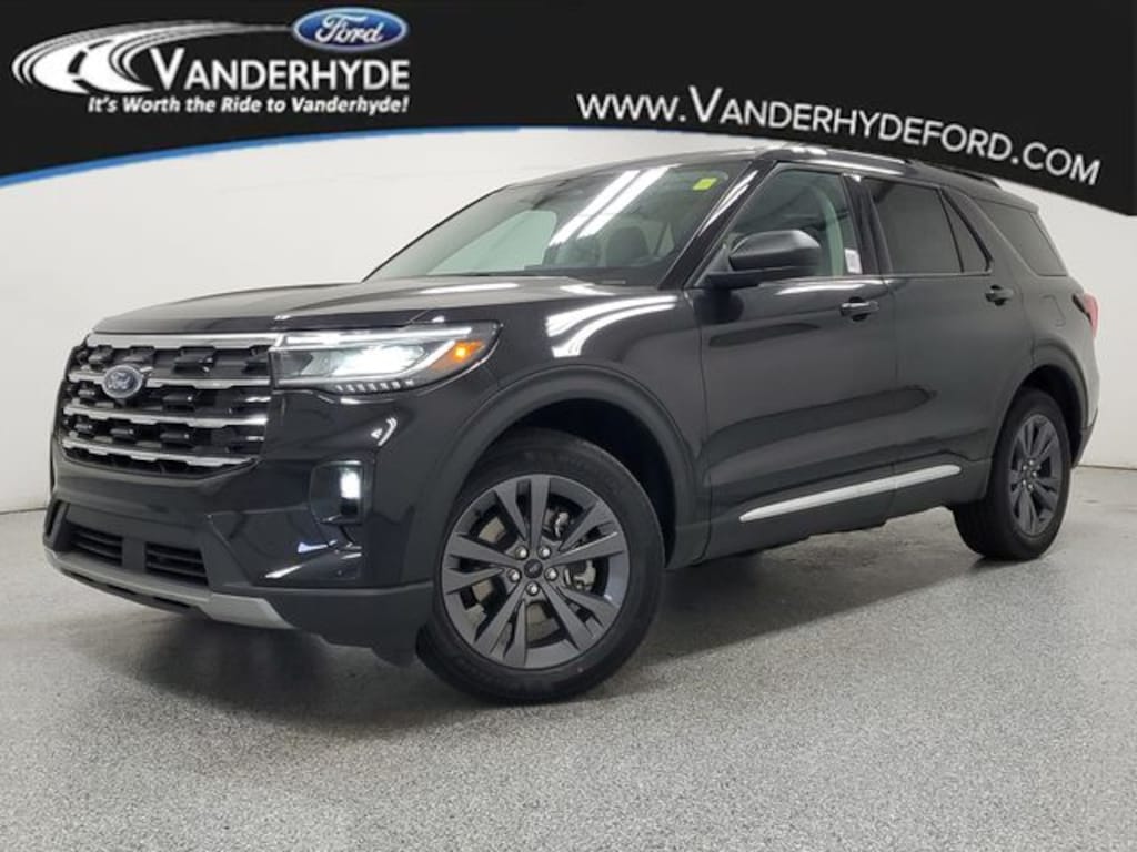 Vanderhyde Ford is excited to offer this gorgeous 2025 Ford Explorer with the following amenities : Active Comfort Package (Front Fascia, Heated ActiveX Seating Material Captain's Chairs, Heated Steering Wheel, Remote Start System, Second Row HVAC Controls, and Universal Garage Door Opener (UGDO)), Equipment Group 200A Standard Package, 3.58 Non-Limited Slip Rear Axle, 3rd row seats: bench, 4-Wheel Disc Brakes, 6 Speakers, ABS brakes, Air Conditioning, Alloy wheels, AM/FM radio: SiriusXM with 360L, AM/FM Stereo, Apple CarPlay/Android Auto, Auto High-beam Headlights, Automatic temperature control, Brake assist, Bumpers: body-color, Compass, Delay-off headlights, Driver door bin, Driver vanity mirror, Dual front impact airbags, Dual front side impact airbags, Electronic Stability Control, Emergency communication system: 911 Assist, Exterior Parking Camera Rear, Four wheel independent suspension, Front anti-roll bar, Front Bucket Seats, Front Center Armrest, Front dual zone A/C, Front reading lights, Fully automatic headlights, Heated door mirrors, Heated front seats, Illuminated entry, Knee airbag, Leather steering wheel, Low tire pressure warning, Navigation System, Occupant sensing airbag, Outside temperature display, Overhead airbag, Overhead console, Panic alarm, Passenger door bin, Passenger vanity mirror, Power door mirrors, Power driver seat, Power Liftgate, Power passenger seat, Power steering, Power windows, Rear air conditioning, Rear anti-roll bar, Rear reading lights, Rear window defroster, Rear window wiper, Remote keyless entry, Security system, Speed control, Speed-sensing steering, Speed-Sensitive Wipers, Split folding rear seat, Spoiler, Steering wheel mounted audio controls, Tachometer, Telescoping steering wheel, Tilt steering wheel, Traction control, Trip computer, Unique Heated Cloth Captain's Chairs, Variably intermittent wipers, Wheels: 18" Sparkle Silver-Painted Aluminum, and Wheels: 20" Carbonized Gray-Painted Aluminum. Price excludes tax, title, license, and doc fees, but does include the following rebates:$1500 - Bonus Customer Cash. Exp. 01/05/2026