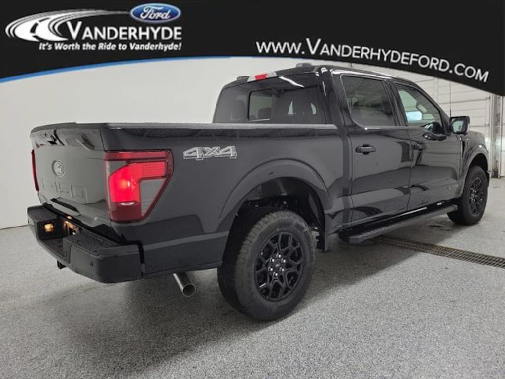 Black 2025 Ford F-150 XLT 4WD 10-Speed Automatic 3.5L PowerBoost Full-Hybrid V6 Vanderhyde Ford has been your trusted Ford dealership in northern Kent County for over 40 years. Proudly serving Cedar Springs, Rockford, Comstock Park, Greenville, Sparta, and the Grand Rapids area, we offer a wide selection of new and used Ford vehicles. Visit Vanderhyde Ford for exceptional customer service, competitive pricing, and a commitment to the community. Explore our inventory online or stop by our dealership today to find your perfect Ford vehicle. Vanderhyde Ford is pleased to offer this handsome 2025 Ford F-150 with the following amenities : Equipment Group 302A Mid, Mobile Office Package (Console Worksurface and Partitioned Lockable Rear Storage), 4-Wheel Disc Brakes, 6 Speakers, ABS brakes, Air Conditioning, Alloy wheels, AM/FM radio: SiriusXM with 360L, Auto High-beam Headlights, Brake assist, Bumpers: chrome, Chrome wheels, Cloth 40/20/40 Front Seat, Compass, Delay-off headlights, Driver door bin, Driver vanity mirror, Dual front impact airbags, Dual front side impact airbags, Electronic Stability Control, Emergency communication system: SYNC 4 911 Assist, Front anti-roll bar, Front Center Armrest, Front fog lights, Front reading lights, Front wheel independent suspension, Fully automatic headlights, Heated door mirrors, Illuminated entry, Low tire pressure warning, Occupant sensing airbag, Outside temperature display, Overhead airbag, Overhead console, Panic alarm, Passenger door bin, Passenger vanity mirror, Power door mirrors, Power steering, Power windows, Radio data system, Radio: AM/FM Stereo w/SiriusXM 360L, Rear Parking Sensors, Rear reading lights, Rear step bumper, Rear window defroster, Remote keyless entry, SecuriCode Keyless-Entry Keypad, Security system, Speed control, Split folding rear seat, Steering wheel mounted audio controls, SYNC 4 w/Enhanced Voice Recognition, Tachometer, Telescoping steering wheel, Tilt steering wheel, Traction control, TraPrice includes: $1000 - Retail Bonus Cash - Select Models 11598 (Exp. 01/05/2026)