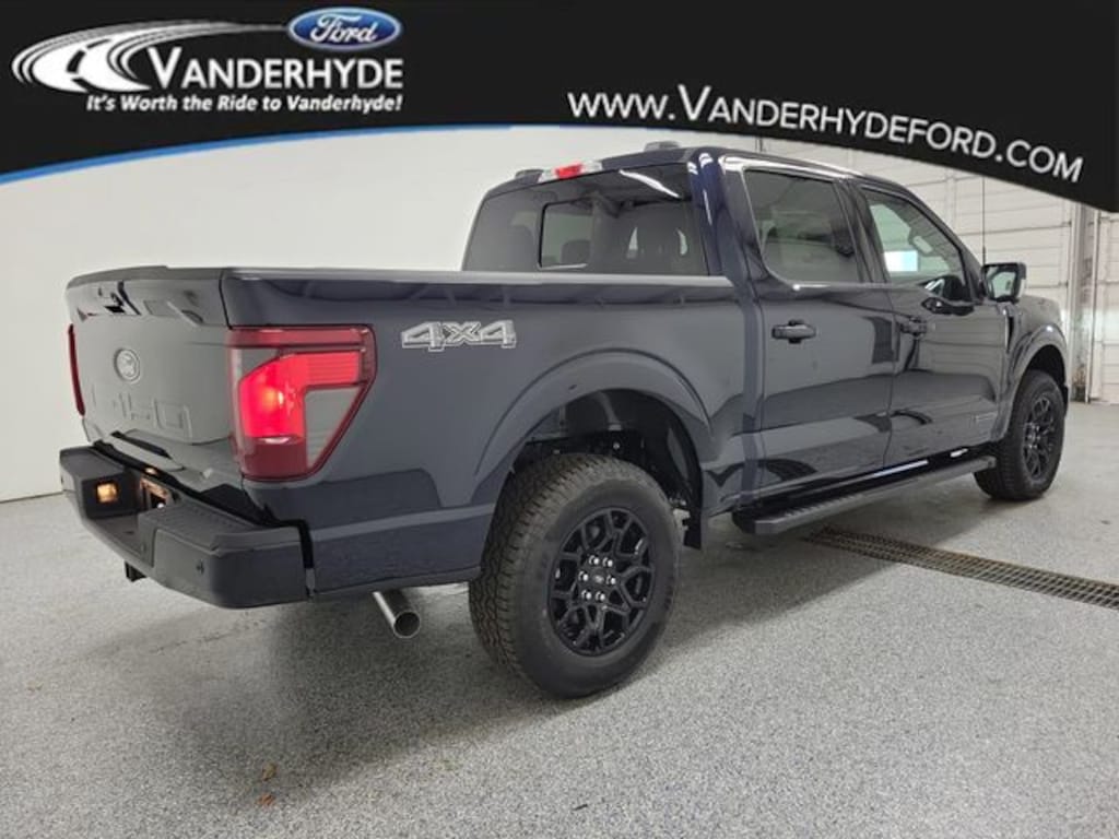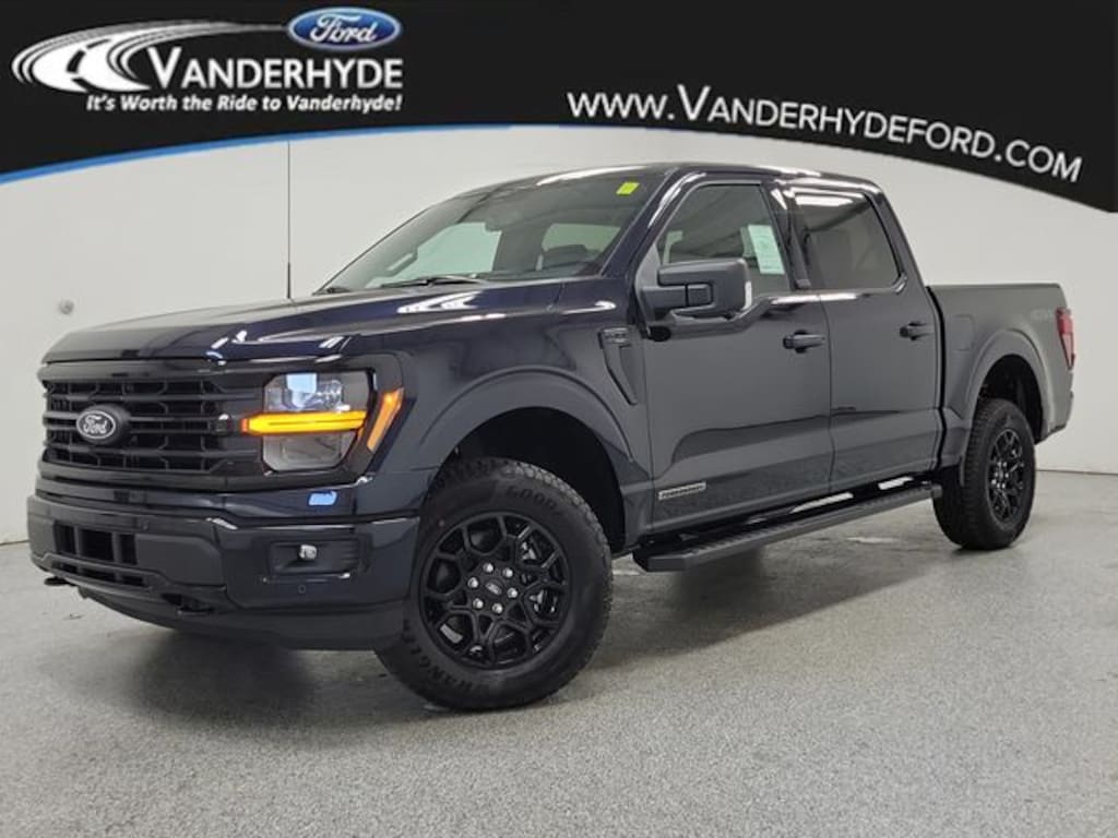Blue 2025 Ford F-150 XLT 4WD 10-Speed Automatic 3.5L PowerBoost Full-Hybrid V6 Vanderhyde Ford has been your trusted Ford dealership in northern Kent County for over 40 years. Proudly serving Cedar Springs, Rockford, Comstock Park, Greenville, Sparta, and the Grand Rapids area, we offer a wide selection of new and used Ford vehicles. Visit Vanderhyde Ford for exceptional customer service, competitive pricing, and a commitment to the community. Explore our inventory online or stop by our dealership today to find your perfect Ford vehicle. Vanderhyde Ford is excited to offer this good-looking 2025 Ford F-150 with the following amenities : Equipment Group 302A Mid, Mobile Office Package (Console Worksurface and Partitioned Lockable Rear Storage), 4-Wheel Disc Brakes, 6 Speakers, ABS brakes, Air Conditioning, Alloy wheels, AM/FM radio: SiriusXM with 360L, Auto High-beam Headlights, Brake assist, Bumpers: chrome, Chrome wheels, Cloth 40/20/40 Front Seat, Compass, Delay-off headlights, Driver door bin, Driver vanity mirror, Dual front impact airbags, Dual front side impact airbags, Electronic Stability Control, Emergency communication system: SYNC 4 911 Assist, Front anti-roll bar, Front Center Armrest, Front fog lights, Front reading lights, Front wheel independent suspension, Fully automatic headlights, Heated door mirrors, Illuminated entry, Low tire pressure warning, Occupant sensing airbag, Outside temperature display, Overhead airbag, Overhead console, Panic alarm, Passenger door bin, Passenger vanity mirror, Power door mirrors, Power steering, Power windows, Radio data system, Radio: AM/FM Stereo w/SiriusXM 360L, Rear Parking Sensors, Rear reading lights, Rear step bumper, Rear window defroster, Remote keyless entry, SecuriCode Keyless-Entry Keypad, Security system, Speed control, Split folding rear seat, Steering wheel mounted audio controls, SYNC 4 w/Enhanced Voice Recognition, Tachometer, Telescoping steering wheel, Tilt steering wheel, Traction control,Price includes: $1000 - Retail Bonus Cash - Select Models 11598 (Exp. 01/05/2026)