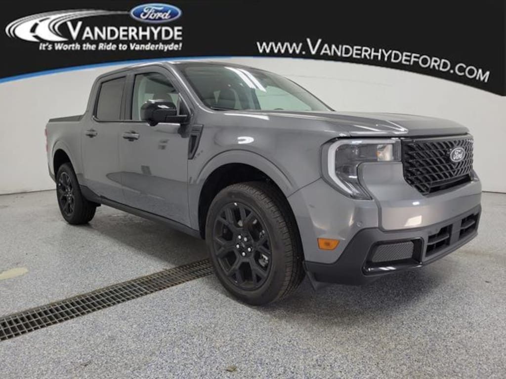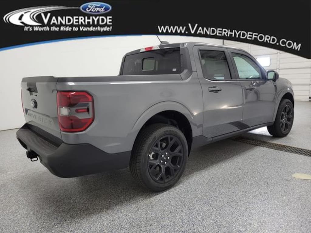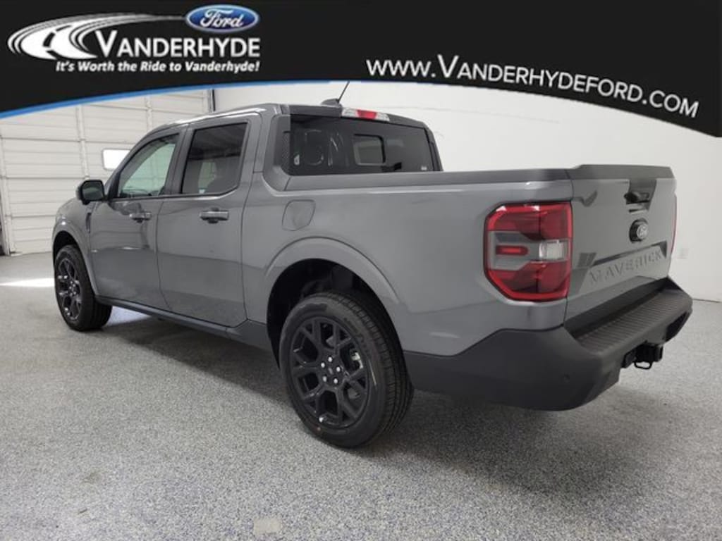 Gray Metallic 2025 Ford Maverick Lariat AWD 8-Speed Automatic EcoBoost 2.0L I4 GTDi DOHC Turbocharged VCT Vanderhyde Ford has been your trusted Ford dealership in northern Kent County for over 40 years. Proudly serving Cedar Springs, Rockford, Comstock Park, Greenville, Sparta, and the Grand Rapids area, we offer a wide selection of new and used Ford vehicles. Visit Vanderhyde Ford for exceptional customer service, competitive pricing, and a commitment to the community. Explore our inventory online or stop by our dealership today to find your perfect Ford vehicle. 22/30 City/Highway MPG Vanderhyde Ford is proud to offer this charming-looking 2025 Ford Maverick with the following amenities : 4K Tow Package (Trailer Brake Controller, Trailer Hitch (Class III) 2" Receiver, Transmission Oil Cooler, and Upgraded Cooling Fan), Black Appearance Package (Black Grille, Black Interior Accents, Front & Back Black Edition Ford Logo, and Wheels: 19" Black Painted Aluminum), Equipment Group 502A, 2.91 Axle Ratio, 4-Wheel Disc Brakes, 8 Speakers, ABS brakes, ActiveX Trimmed Heated Front Bucket Seats, Air Conditioning, Alloy wheels, AM/FM radio: SiriusXM with 360L, Apple CarPlay/Android Auto, Auto High-beam Headlights, Automatic temperature control, Brake assist, Bumpers: body-color, Compass, Delay-off headlights, Driver door bin, Driver vanity mirror, Dual front impact airbags, Dual front side impact airbags, Electronic Stability Control, Emergency communication system: SYNC 4 911 Assist, Exterior Parking Camera Rear, Four wheel independent suspension, Front & Rear Floor Liners w/o Carpet Mats, Front anti-roll bar, Front Bucket Seats, Front Center Armrest, Front dual zone A/C, Front reading lights, Fully automatic headlights, Heated door mirrors, Heated front seats, Heated steering wheel, Illuminated entry, Knee airbag, Low tire pressure warn Price excludes tax, title, license, and doc fees, but does include the following rebates:$1000 - Retail Customer Cash. Exp. 01/05/2026Price includes: $1000 - Retail Customer Cash v2 11592 (Exp. 01/05/2026)