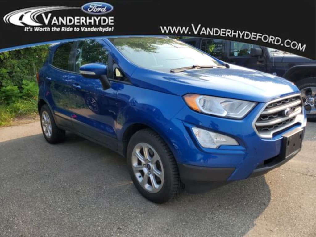 Vanderhyde Ford is proud to offer this great-looking 2021 Ford EcoSport with the following features : SE Convenience Package (110V/150W AC Power Outlet, 7 Speakers, Ambient Lighting, BLIS Blind Spot Information System, SiriusXM Traffic & Travel Link, and SYNC 3 Communications & Entertainment System w/47B), Equipment Group 200A, *GAS SAVER, 3.44 Axle Ratio, 4-Wheel Disc Brakes, 6 Speakers, ABS brakes, Air Conditioning, Alloy wheels, AM/FM radio: SiriusXM, AppLink/Apple CarPlay and Android Auto, Automatic temperature control, Back Up Camera, Bluetooth, Brake assist, Bumpers: body-color, Compass, Delay-off headlights, Driver door bin, Driver vanity mirror, Dual front impact airbags, Dual front side impact airbags, Electronic Stability Control, Emergency communication system: SYNC 3 911 Assist, Exterior Parking Camera Rear, Front anti-roll bar, Front Bucket Seats, Front Center Armrest, Front fog lights, Front reading lights, Front wheel independent suspension, Fully automatic headlights, Heated front seats, Illuminated entry, Knee airbag, Leather Shift Knob, Low tire pressure warning, Navigation, Occupant sensing airbag, Outside temperature display, Overhead airbag, Overhead console, Panic alarm, Passenger door bin, Passenger vanity mirror, Power door mirrors, Power moonroof, Power steering, Power windows, Radio data system, Radio: AM/FM/MP3 Stereo, Rear Parking Sensors, Rear seat center armrest, Rear side impact airbag, Rear window defroster, Rear window wiper, Remote keyless entry, REMOTE START, Roof rack: rails only, SiriusXM Radio, Speed control, Speed-sensing steering, Split folding rear seat, Steering wheel mounted audio controls, SYNC 3, SYNC 3 Communications & Entertainment System, Tachometer, Telescoping steering wheel, Tilt steering wheel, Traction control, Trip computer, Turn signal indicator mirrors, Unique Cloth Heated Front Bucket Seats, Variably intermittent wipers, and Wheels: 16" Shadow Silver-Painted Aluminum.
