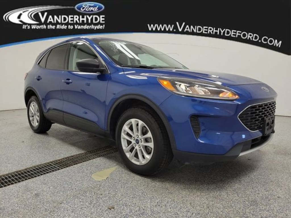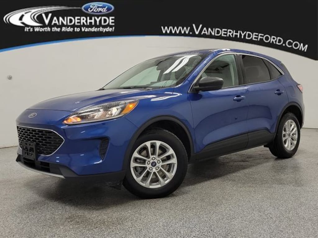 Vanderhyde Ford is very proud to offer this wonderful 2022 Ford Escape with the following options : Equipment Group 200A, 3.81 Axle Ratio, 4-Wheel Disc Brakes, 6 Speakers, ABS brakes, Air Conditioning, Alloy wheels, AM/FM radio: SiriusXM, AM/FM Stereo, Auto High-beam Headlights, Back Up Camera, Bluetooth, Brake assist, Bumpers: body-color, Compass, Delay-off headlights, Driver door bin, Driver vanity mirror, Dual front impact airbags, Dual front side impact airbags, Electronic Stability Control, Emergency communication system: SYNC 3 911 Assist, Exterior Parking Camera Rear, FordPass Connect, Four wheel independent suspension, Front anti-roll bar, Front Bucket Seats, Front Center Armrest, Front License Plate Bracket, Front reading lights, Fully automatic headlights, Illuminated entry, Knee airbag, Low tire pressure warning, Occupant sensing airbag, Outside temperature display, Overhead airbag, Overhead console, Panic alarm, Passenger door bin, Passenger vanity mirror, Power door mirrors, Power steering, Power windows, Radio data system, Rear anti-roll bar, Rear reading lights, Rear window defroster, Rear window wiper, Remote keyless entry, REMOTE START, Speed control, Speed-sensing steering, Speed-Sensitive Wipers, Split folding rear seat, Spoiler, Steering wheel mounted audio controls, SYNC 3 Communications & Entertainment System, Tachometer, Telescoping steering wheel, Tilt steering wheel, Traction control, Trip computer, Unique Cloth Front Bucket Seats, Variably intermittent wipers, and Wheels: 17" Shadow Silver-Painted Aluminum.