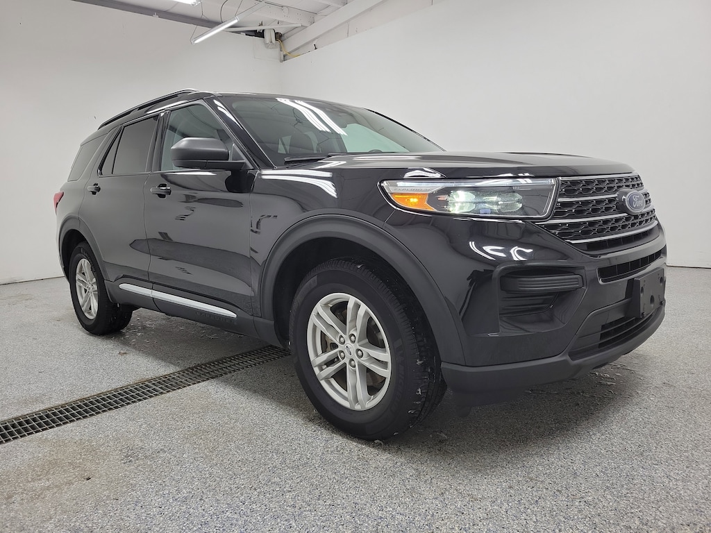 Discover the versatility and power of this Black 2022 Ford Explorer AWD XLT! Equipped with a robust EcoBoost 2.3L Turbo I4 engine and a smooth 10-speed shiftable automatic transmission, this SUV is ready for any adventure. The AWD system ensures confident handling in all weather conditions. Enjoy comfort and convenience with features like heated front seats, power-adjustable driver and passenger seats, automatic climate control (dual and rear zones), SYNC infotainment with an 8-inch touchscreen, Apple CarPlay and Android Auto, FordPass Connect with smart device compatibility, and a rearview camera with sensors. Advanced safety features include Front Automatic Emergency Braking, Lane Keeping Assist, Pedestrian Detection Pre-collision Warning, Blind Spot Monitoring, and Rear Cross Traffic Alert. Flexible seating with a third-row, black roof rails, and a power liftgate make this Explorer perfect for families or anyone needing extra space and utility. Don't miss your chance to drive home this stylish and capable SUV today! CARFAX One-Owner Clean CARFAX