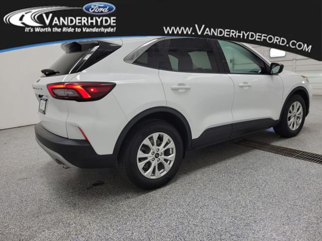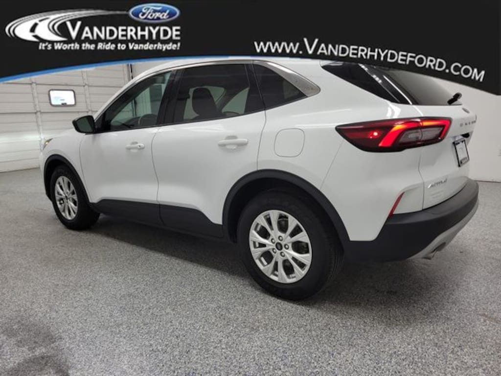 Vanderhyde Ford is pleased to offer this great 2023 Ford Escape with the following amenities : Cold Weather Package (Heated Front Row Seats, Heated Sideview Mirrors, Heated Steering Wheel, and Remote Starter System), Equipment Group 200A, *ONE OWNER*, 3.81 Axle Ratio, 4-Wheel Disc Brakes, 6 Speakers, ABS brakes, Air Conditioning, Alloy wheels, AM/FM radio: SiriusXM, AM/FM Stereo, Auto High-beam Headlights, Automatic temperature control, Back Up Camera, Bluetooth, Brake assist, Bumpers: body-color, Compass, Delay-off headlights, Driver door bin, Driver vanity mirror, Dual front impact airbags, Dual front side impact airbags, Electronic Stability Control, Emergency communication system: SYNC 4 911 Assist, Exterior Parking Camera Rear, FordPass Connect, Four wheel independent suspension, Front anti-roll bar, Front Bucket Seats, Front Center Armrest, Front dual zone A/C, Front reading lights, Fully automatic headlights, Illuminated entry, Knee airbag, Low tire pressure warning, Occupant sensing airbag, Outside temperature display, Overhead airbag, Overhead console, Panic alarm, Passenger door bin, Passenger vanity mirror, Power door mirrors, Power driver seat, Power Liftgate, Power steering, Power windows, Radio data system, Rear anti-roll bar, Rear reading lights, Rear seat center armrest, Rear window defroster, Rear window wiper, Remote keyless entry, REMOTE START, Speed control, Speed-sensing steering, Speed-Sensitive Wipers, Split folding rear seat, Spoiler, Steering wheel mounted audio controls, SYNC 4, Tachometer, Telescoping steering wheel, Tilt steering wheel, Traction control, Trip computer, Unique Cloth Front Bucket Seats, Variably intermittent wipers, and Wheels: 17" Shadow Silver-Painted Aluminum.