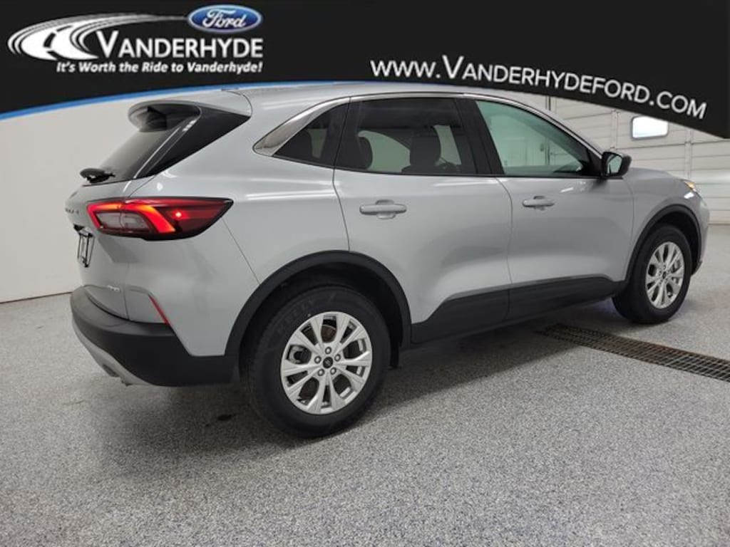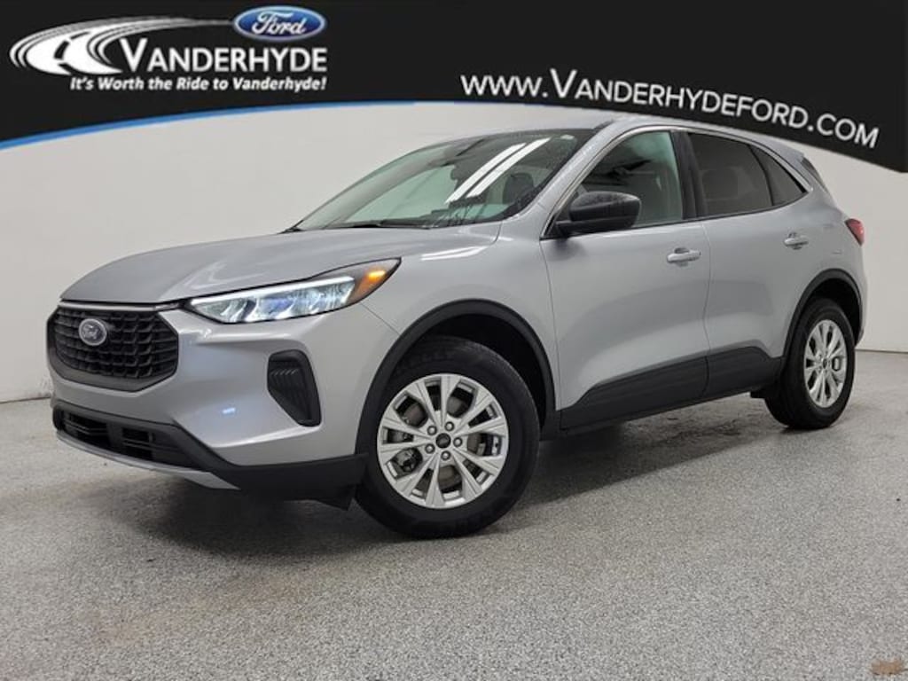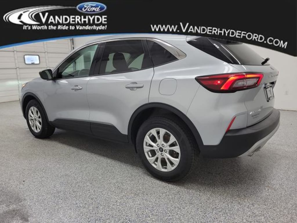 Vanderhyde Ford is pumped up to offer this wonderful 2023 Ford Escape with the following features : Equipment Group 200A, 3.81 Axle Ratio, 4-Wheel Disc Brakes, 6 Speakers, ABS brakes, Air Conditioning, Alloy wheels, AM/FM radio: SiriusXM, AM/FM Stereo, Auto High-beam Headlights, Automatic temperature control, Back Up Camera, Bluetooth, Brake assist, Bumpers: body-color, Compass, Delay-off headlights, Driver door bin, Driver vanity mirror, Dual front impact airbags, Dual front side impact airbags, Electronic Stability Control, Emergency communication system: SYNC 4 911 Assist, Exterior Parking Camera Rear, FordPass Connect, Four wheel independent suspension, Front anti-roll bar, Front Bucket Seats, Front Center Armrest, Front dual zone A/C, Front reading lights, Fully automatic headlights, Heated door mirrors, Heated front seats, Heated steering wheel, Illuminated entry, Knee airbag, Low tire pressure warning, Occupant sensing airbag, Outside temperature display, Overhead airbag, Overhead console, Panic alarm, Passenger door bin, Passenger vanity mirror, Power door mirrors, Power driver seat, Power Liftgate, Power steering, Power windows, Radio data system, Rear anti-roll bar, Rear reading lights, Rear seat center armrest, Rear window defroster, Rear window wiper, Remote keyless entry, REMOTE START, Speed control, Speed-sensing steering, Speed-Sensitive Wipers, Split folding rear seat, Spoiler, Steering wheel mounted audio controls, SYNC 4, Tachometer, Telescoping steering wheel, Tilt steering wheel, Traction control, Trip computer, Unique Cloth Front Bucket Seats, Variably intermittent wipers, and Wheels: 17" Shadow Silver-Painted Aluminum.
