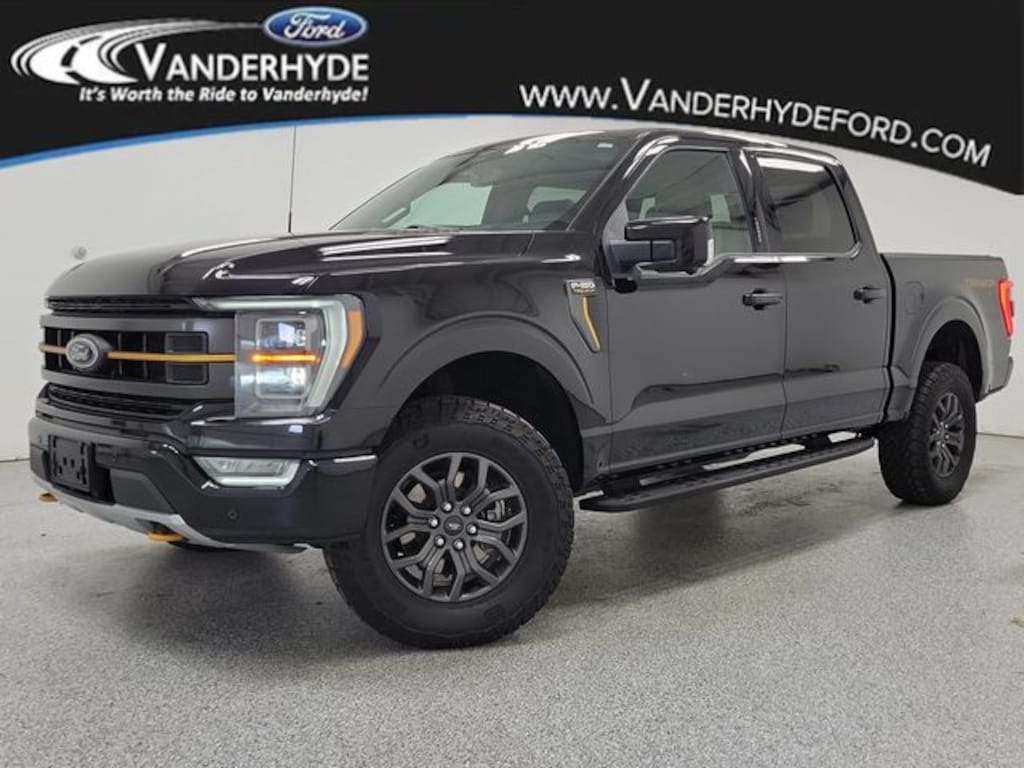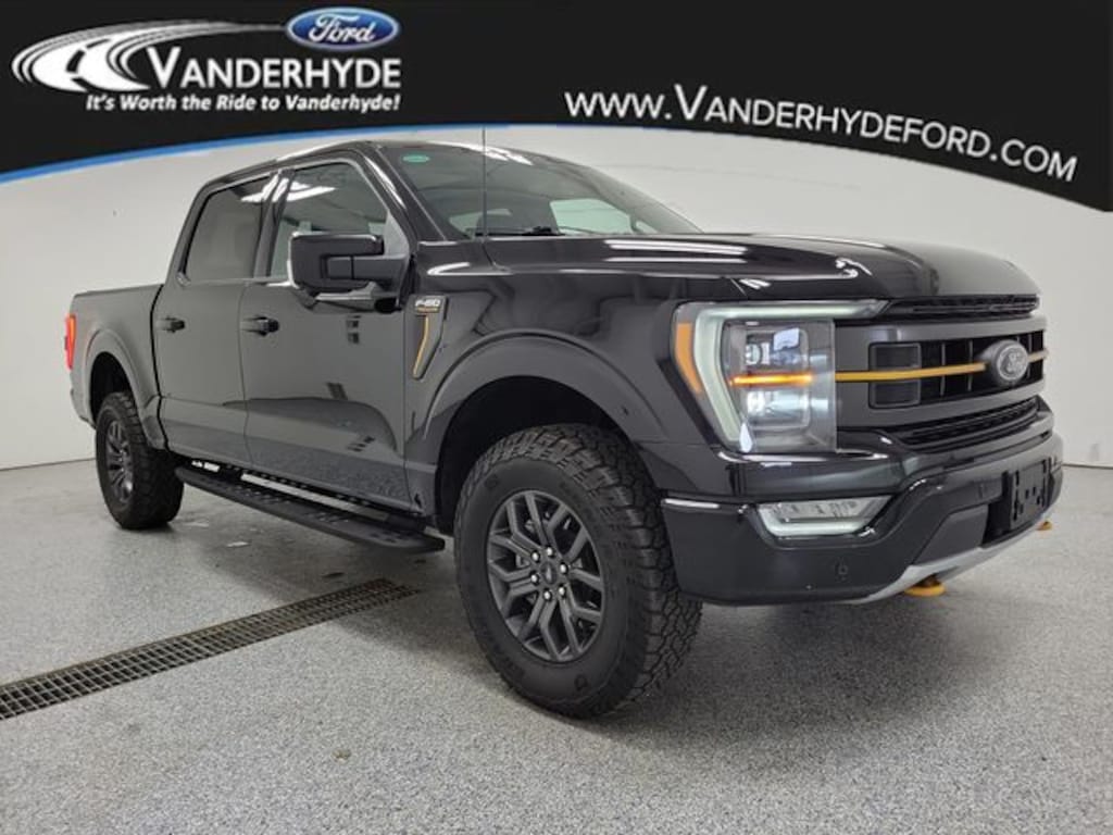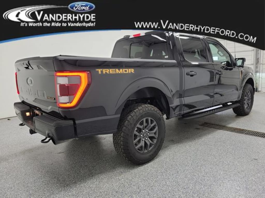 Vanderhyde Ford is pleased to offer this fantastic 2023 Ford F-150 with the following amenities : Equipment Group 402A High (12" Productivity Screen in Instrument Cluster, 2nd Row Heated Seats, 360 Degree Camera, Advanced Security Pack, Heated Steering Wheel, LED Projector w/Dynamic Bending Headlamps, Power Glass Sideview Mirr w/Body-Color Skull Caps, Power Tilt/Telescoping Steering Column w/Memory, Power-Adjustable Pedals w/Memory, Power-Sliding Rear Window, Pro Trailer Backup Assist & Pro Trailer Hitch Assist, Radio: B&O Sound System by Bang & Olufsen, Rain-Sensing Wipers, Unique Tremor Leather-Trimmed Bucket Seats, Universal Garage Door Opener, and Wireless Charging Pad), Ford Co-Pilot360 Assist 2.0 (Connected Built-In Navigation, Evasive Steering Assist, Intelligent Adaptive Cruise Control w/Stop & Go, Intersection Assist, and Speed Sign Recognition), GVWR: 7,000 lbs Payload Package, SYNC4, 4-Wheel Disc Brakes, ABS brakes, Air Conditioning, Auto High-beam Headlights, Auto Start-Stop Removal (DISC), Back Up Camera, Bluetooth, Brake assist, Class IV Trailer Hitch Receiver, Compass, Delay-off headlights, Driver door bin, Dual front impact airbags, Dual front side impact airbags, Electronic Locking w/3.73 Axle Ratio, Electronic Stability Control, Emergency communication system: SYNC 4 911 Assist, Exterior Parking Camera Rear, Front anti-roll bar, Front reading lights, Front wheel independent suspension, Fully automatic headlights, Heated door mirrors, Illuminated entry, Integrated Trailer Brake Controller, Low tire pressure warning, Navigation, Occupant sensing airbag, Outside temperature display, Overhead airbag, Overhead console, Panic alarm, Passenger door bin, Passenger vanity mirror, Power door mirrors, Power steering, Power windows, Radio data system, Rear step bumper, Remote keyless entry, Security system, Speed control, Speed-sensing steering, Split folding rear seat, Steering wheel mounted audio controls, SYNC 4 w/Enhanced Voice Recognition, Tachometer, Telescoping steering wheel, Tilt steering wheel, Tough Bed Spray-In Bedliner, Traction control, Trip computer, Variably intermittent wipers, and Voltmeter.