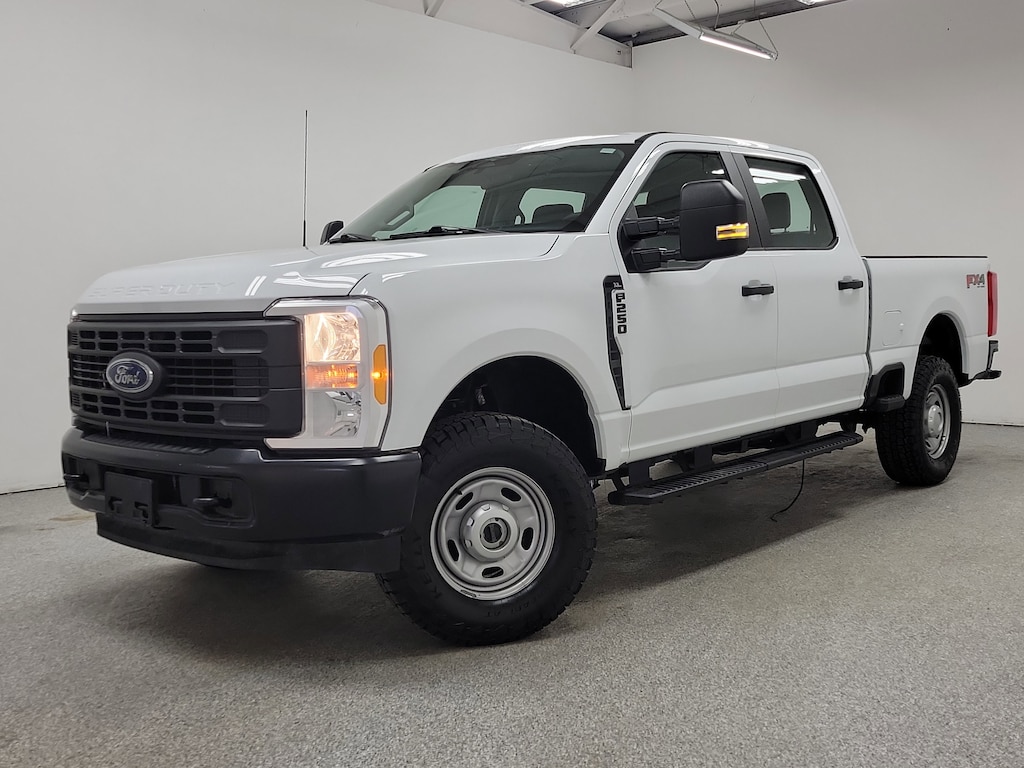 Tackle any job with confidence in this White 2023 Ford F-250 Super Duty XL 4x4 Crew Cab. Equipped with a powerful 6.8L V8 engine and a 10-speed automatic transmission, this truck is ready for tough work or weekend adventures. Enjoy advanced features like wireless Apple CarPlay and Android Auto, SYNC infotainment with an 8-inch touchscreen, FordPass Connect with smart device compatibility, and a rearview camera for easy maneuvering. The FX4 Off-Road Package, trailer brake controller, 4.30 electronic locking axle ratio, and integrated towing mirrors make this F-250 a top choice for hauling and off-road capability. Stay comfortable with vinyl upholstery, power door locks, power windows, and cruise control. Practical touches include front and rear wheel well liners, power locking tailgate, running boards, and upfitter switches. Safety features include front and rear side curtain airbags, trailer stability control, programmable safety key, and tire pressure monitoring. Whether you're on the job or on the go, this F-250 delivers strength, technology, and peace of mind. Test drive today and experience the difference.