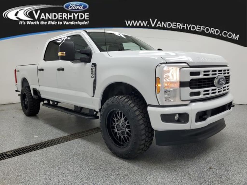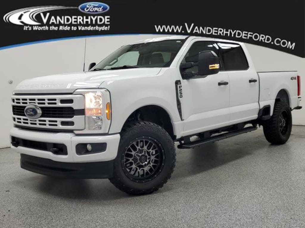 Vanderhyde Ford is very proud to offer this beautiful-looking 2024 Ford F-250SD with the following options : GVWR: 10,000 lb Payload Package, Order Code 603A, SYNC4, 3.73 Axle Ratio, 4-Wheel Disc Brakes, 6 Speakers, ABS brakes, Air Conditioning, Alloy wheels, AM/FM radio, AM/FM Stereo w/MP3 Player, Auto High-beam Headlights, Back Up Camera, Bluetooth, Brake assist, Bumpers: chrome, Cloth 40/20/40 Split Bench Seat, Compass, Delay-off headlights, Driver door bin, Driver vanity mirror, Dual front impact airbags, Dual front side impact airbags, Electronic Stability Control, Electronic-Locking w/3.73 Axle Ratio, Emergency communication system: SYNC 4 911 Assist, Exterior Parking Camera Rear, Front anti-roll bar, Front Center Armrest w/Storage, Front fog lights, Front reading lights, Fully automatic headlights, Heated door mirrors, Illuminated entry, Low tire pressure warning, Outside temperature display, Overhead airbag, Overhead console, Panic alarm, Passenger door bin, Passenger vanity mirror, Platform Running Boards, Power door mirrors, Power driver seat, Power steering, Power windows, Privacy Glass, Rear reading lights, Rear step bumper, Remote keyless entry, Speed control, Split folding rear seat, Steering wheel mounted audio controls, SYNC 4, Tachometer, Telescoping steering wheel, Tilt steering wheel, Traction control, Trip computer, Turn signal indicator mirrors, Variably intermittent wipers, and Wheels: 18" Sparkle Silver Painted Cast Aluminum.