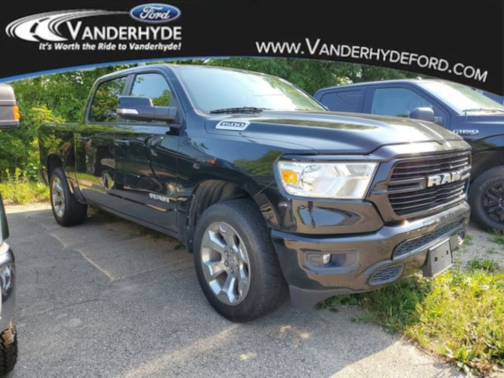 Vanderhyde Ford is very proud to offer this terrific 2019 Ram 1500 with the following options : Bed Utility Group (4 Adjustable Cargo Tie-Down Hooks, Pick-Up Box Lighting, and Spray In Bedliner), Big Horn Level 1 Equipment Group (Auto-Dimming Rear-View Mirror, Big Horn IP Badge, Class IV Receiver Hitch, Cluster 3.5" TFT Color Display, Foam Bottle Insert (Door Trim Panel), Glove Box Lamp, Power 4-Way Driver Lumbar Adjust, Power 8-Way Driver Seat, Power Adjustable Pedals, Power Heated Fold Away Mirrors, Radio: Uconnect 4 w/8.4" Display, Rear Dome w/On/Off Switch Lamp, Rear Power Sliding Window, Rear Window Defroster, Single Disc Remote CD Player, SiriusXM Satellite Radio, Sun Visors w/Illuminated Vanity Mirrors, and Universal Garage Door Opener), Quick Order Package 23Z Big Horn/Lone Star (Steering Wheel Mounted Audio Controls), Sport Appearance Package (3 Rear Seat Head Restraints, 4 Way Front Headrests, Auto-Dimming Exterior Driver Mirror, Black Interior Accents, Body Color Door Handles, Body Color Front Bumper, Body Color Rear Bumper w/Step Pads, Bucket Seats, Center Console Parts Module, Deluxe Cloth Bucket Seats, Exterior Mirrors Courtesy Lamps, Exterior Mirrors w/Memory, Exterior Mirrors w/Supplemental Signals, Front Seat Back Map Pockets, Full Length Floor Console, Grille B/Color Outline 1 Texture 2, Manual Adjust 4-Way Front Passenger Seat, Power Heated Fold-Away Mirrors, Power-Folding Mirrors, and Rear 60/40 Folding Seat), 3.21 Rear Axle Ratio, 4-Wheel Disc Brakes, 48V Belt Starter Generator, 6 Speakers, ABS brakes, Air Conditioning, AM/FM radio, Back Up Camera, Bluetooth, Brake assist, Bumpers: chrome, Cloth Bench Seat, Compass, Delay-off headlights, Driver door bin, Dual front impact airbags, Dual front side impact airbags, Electronic Stability Control, Front anti-roll bar, Front Center Armrest w/Storage, Front fog lights, Front reading lights, Front wheel independent suspension, Fully automatic headlights, GPS Antenna Input, Heated door mirrors, Illuminated entry, Leather steering wheel, Low tire pressure warning, Manufacturer's Statement of Origin, Occupant sensing airbag, Outside temperature display, Overhead airbag, Overhead console, Panic alarm, ParkView Rear Back-Up Camera, Passenger door bin, Passenger vanity mirror, Power door mirrors, Power steering, Power windows, Radio data system, Radio: Uconnect 3 w/5" Display, Rear anti-roll bar, Rear seat center armrest, Rear step bumper, Rear Wheelhouse Liners, Remote keyless entry, Remote Start System, Speed control, Split folding rear seat, Tachometer, Telescoping steering wheel, Tilt steering wheel, Traction control, Trip computer, Variably intermittent wipers, Voltmeter, and Wheels: 20" x 9" Aluminum Chrome Clad.