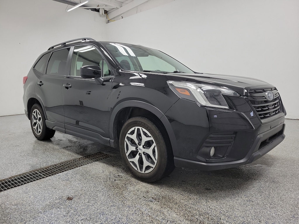 Drive with confidence in this Black 2023 Subaru Forester AWD Premium 4dr Crossover. Equipped with Subaru's legendary All-Wheel Drive, a responsive 2.5L 182hp engine, and a smooth CVT, this Forester is ready for any adventure. Enjoy peace of mind with advanced safety features like Front Automatic Emergency Braking, Pedestrian Detection, Lane Centering, Lane Keeping Assist, Adaptive Cruise Control, Blind Spot Detection, Rear Cross Traffic Alert, and Automatic Emergency Steering. Stay connected and entertained with Apple CarPlay, Android Auto, STARLINK infotainment, and a 6.5-inch touchscreen. Comfort and convenience abound with a power panoramic sunroof, heated front seats, power rear gate, power driver's seat with lumbar support, and premium upholstery with contrast stitching. Other highlights include LED headlights, rearview camera with washer, and power heated side mirrors. This Forester blends safety, technology, and versatility in a stylish package-perfect for daily commutes or weekend getaways. CARFAX One-Owner Clean CARFAX